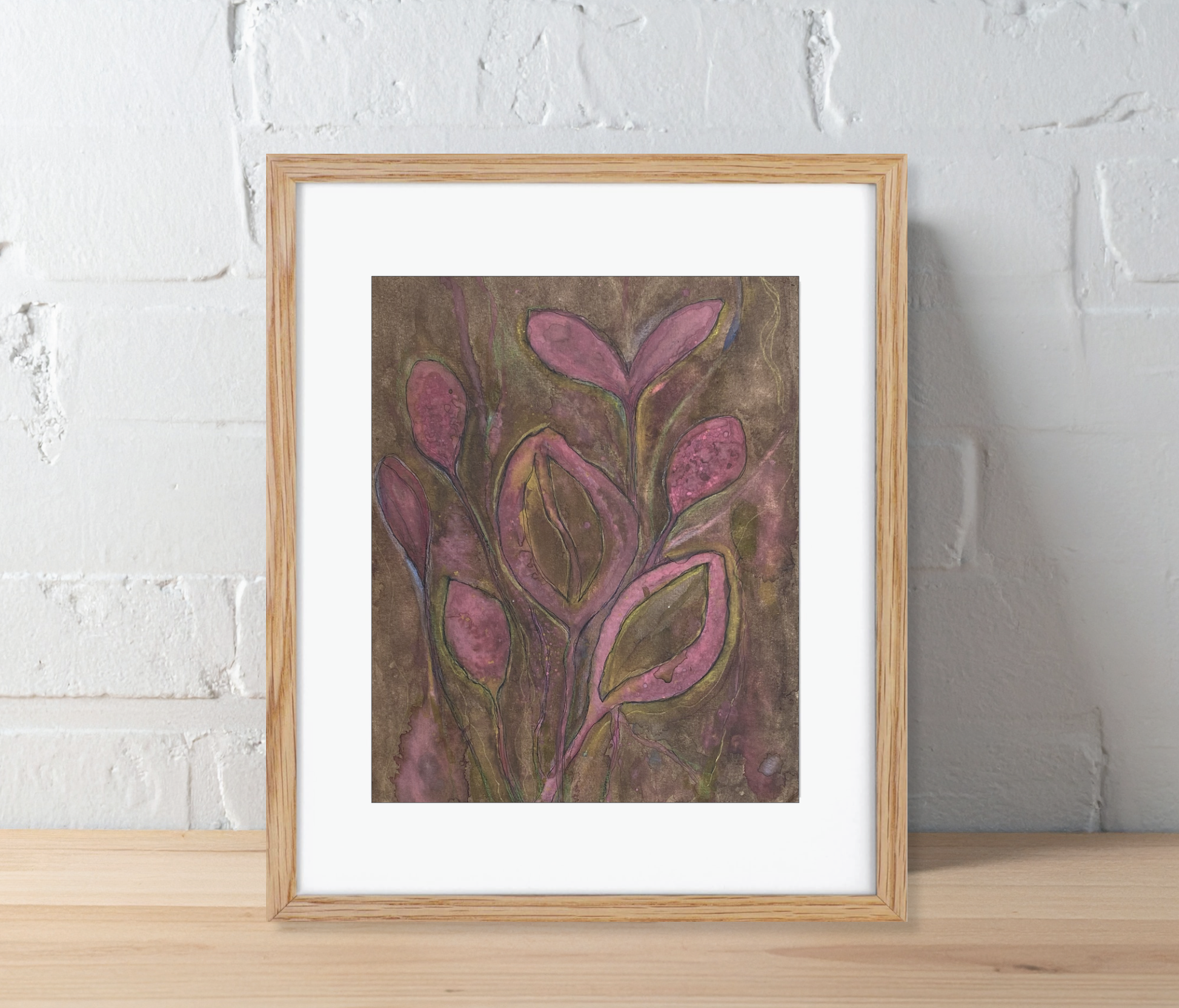 Pink Abstract Flowers Original Mixed-Media Art