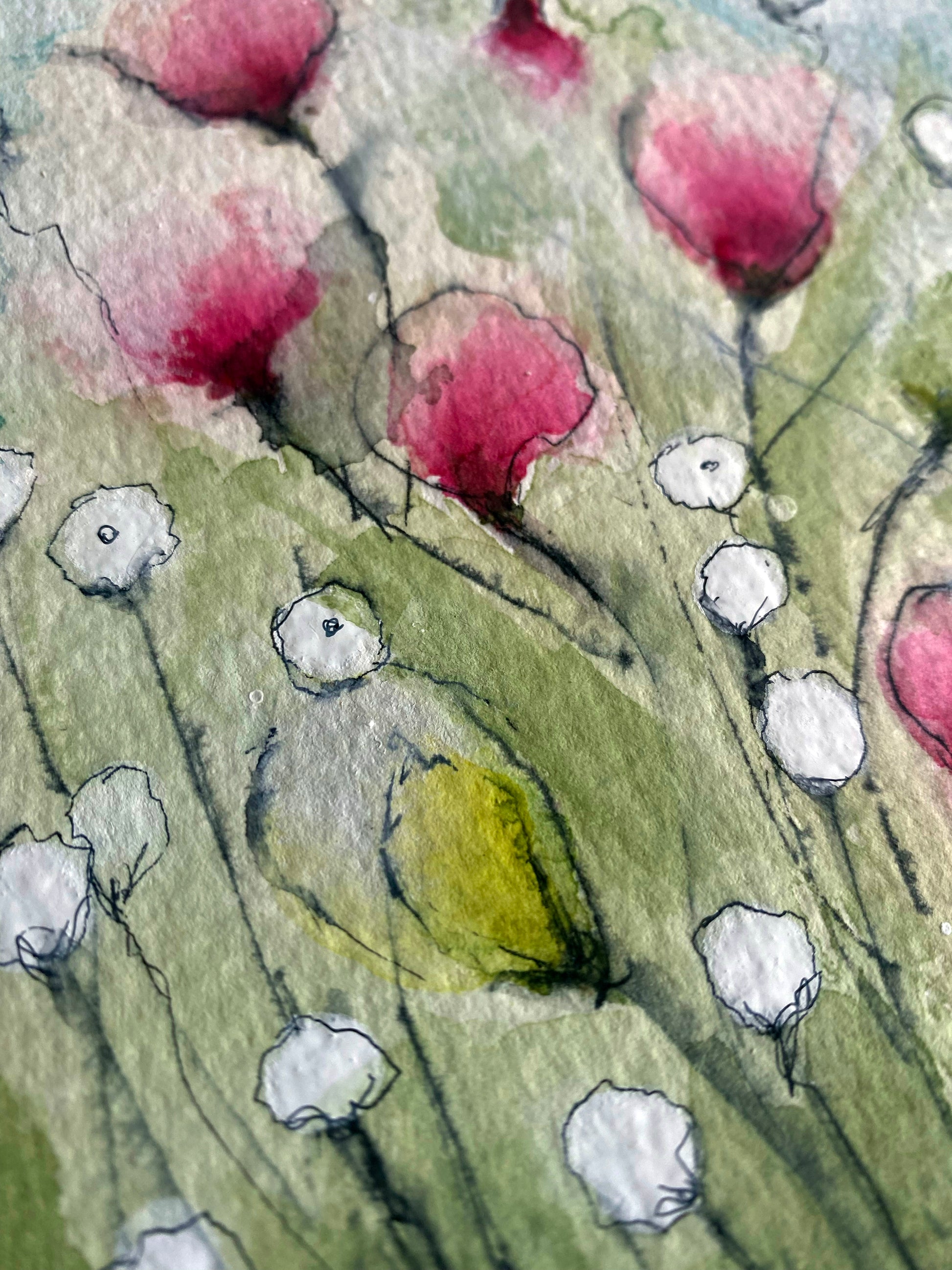These wild blooms, are painted in a loose and abstract style, reflect an appreciation and love for nature.